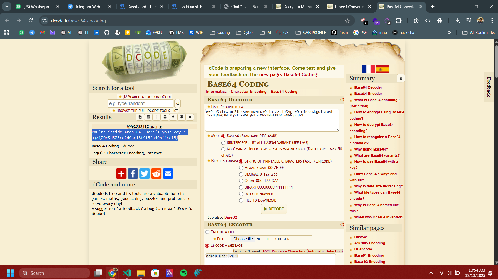 The challenge name “AREA64” strongly hints at Base64 encoding. Interpreting “64” as a reference to Base64, I attempted to decode the given data using Base64, and the decoding was successful, confirming the assumption.
